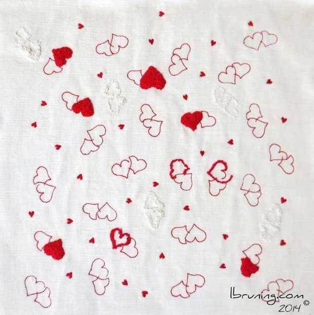 Utilicé una combinación de patrones de corazón disponibles en mi máquina de coser Bernina con nudos francés cosido a mano.