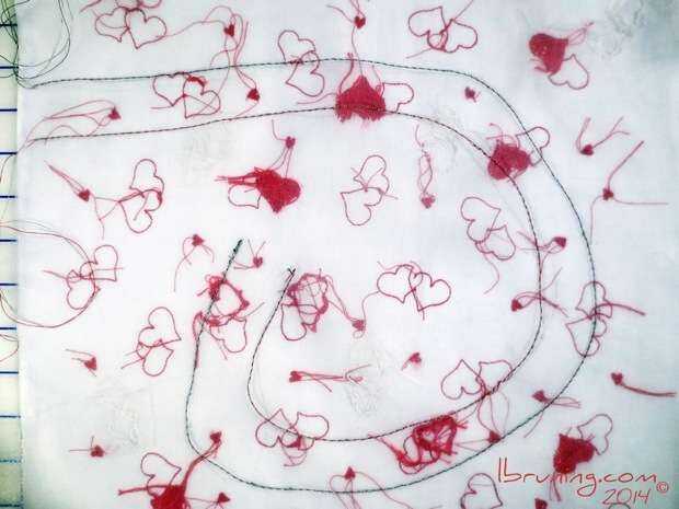 En una pieza transparente de la tela, como una gasa o la organza, coser el rastro positivo con el hilo conductor y marque con hilo rojo o marcador.