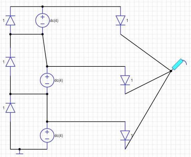 Ahora, aquí está una captura: uno podría conectar fácilmente todos las doce baterías en serie y prescindir de cualquier tipo de diodos, o cualquier cosa. Pero entonces, este arreglo tiene dos grandes desventajas: