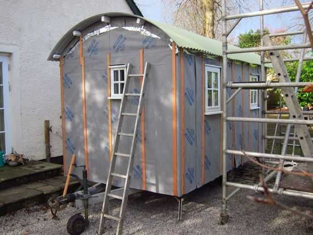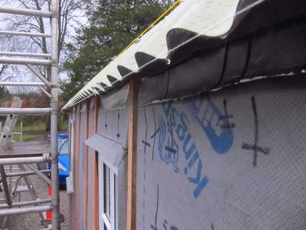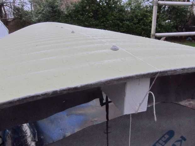 Acanalada de la azotea tiene una "condensación no" anti capa de goteo. Esencialmente, un poco lanudo acabado en la parte inferior que trampas de condensación y permite que se evapore lentamente en el aire, en lugar de por goteo. También opté por una capa del ploymer en la lata que añade años a su vida útil. Yo probablemente saltar este acabado la próxima vez, ya que es probablemente innecesaria y me gustaría tener la opción de recoger agua de lluvia desde el tejado para lavarse y beber tal vez (una vez hervido) la lata para el techo y fijaciones coste alrededor de £270 GBP.