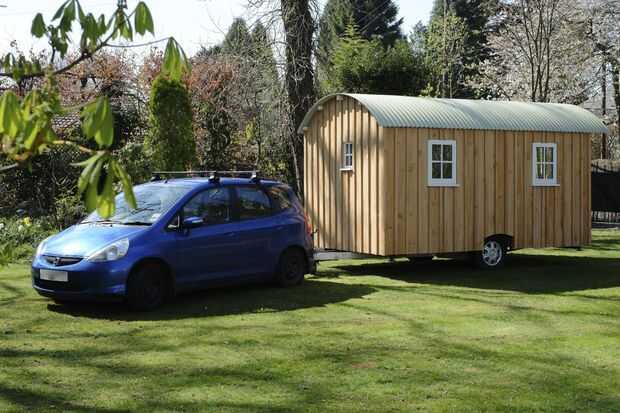 La choza se utilizará como un refugio tranquilo en un jardín para hacer arte y artesanía y relajarse. No planeo esta choza como un asunto de "viajar". No es aerodinámico y estimo su peso en alrededor de 1200kg. Si construyo otro utilizo un trabajo pesado, remolque de doble eje.