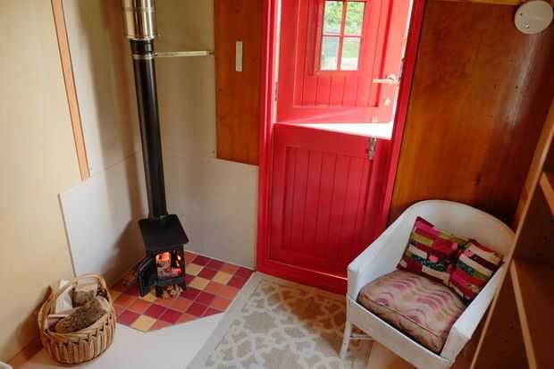 Dicho esto, construirlo que puede soportar ser remolcado. El marco de la madera contrachapada de piel es muy rígido, mucho más lo que yo esperaba. Cuando terminé las tomas rincón por primera vez después de la construcción, esperaba el edificio a caer sólo un poco en cada extremo pero que no se mueva en absoluto. La chimenea se desengancha para reducir altura y pondría un sello sobre él para el transporte, lo contrario el efecto "venturi" tal vez aspirar ceniza de la chimenea.