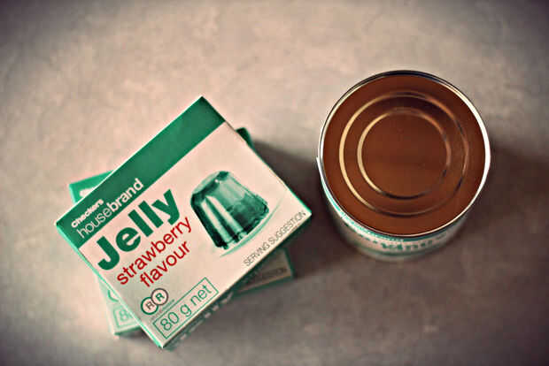 1. Dos paquetes de gelatina (puede mezclar diversos sabores de jalea, o usted puede mezclar los sabores de la misma)