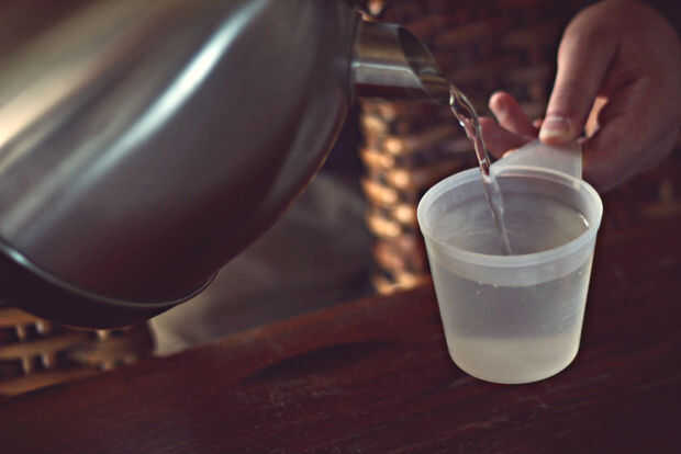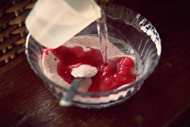 Paso 2: Lanzar jalea en el recipiente de vidrio y añadir agua hirviendo.