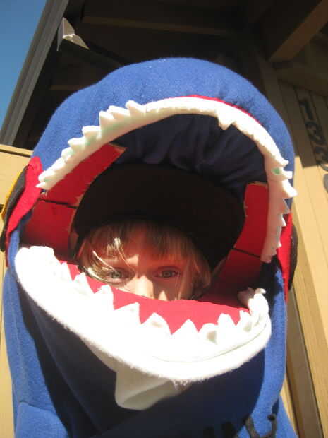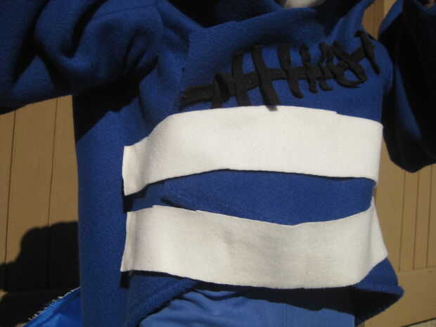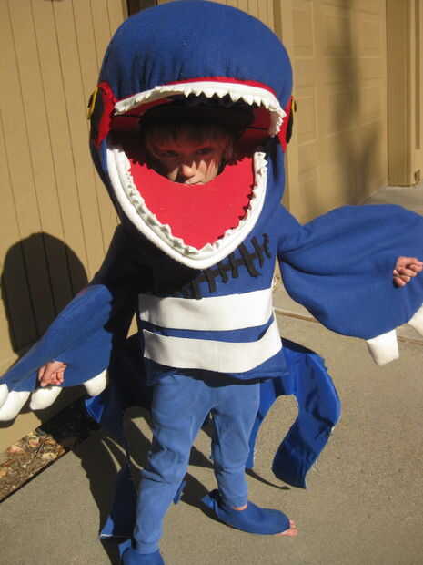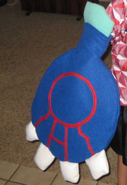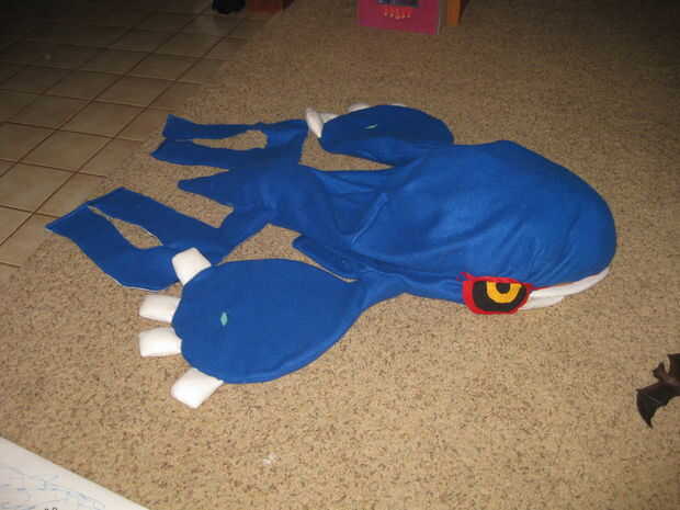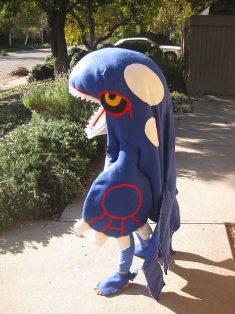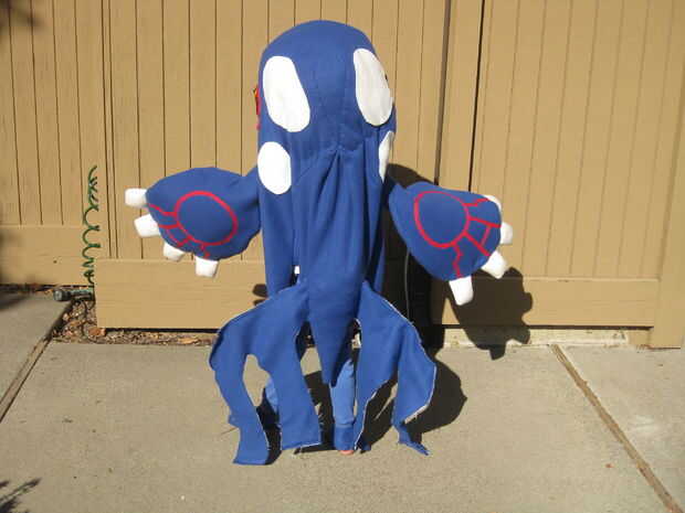 Para Halloween 2009 mi hijo de entonces seis años y le hizo un traje de Kyogre (Pokemon legendario) usando: