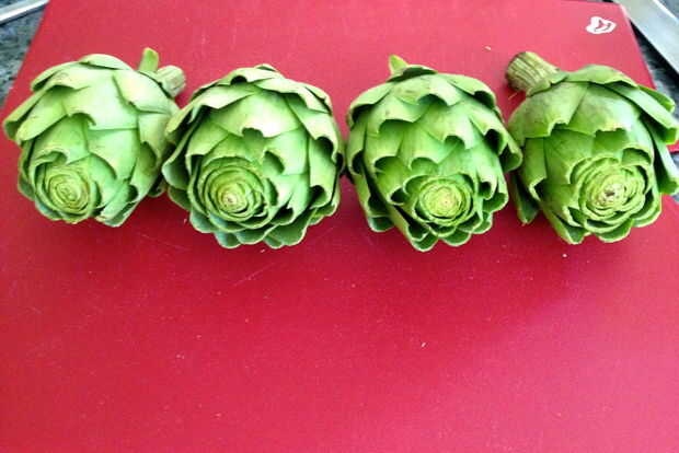 alcachofas están más fáciles que usted podría pensar.Paso 1: Lavar y cortar Encontrar algunas alcachofas apuestos. Generalmente obtener un montón de los pequeños baratos en lugar de los grandes y costosos, porque las hojas son generalmente más pequeñ