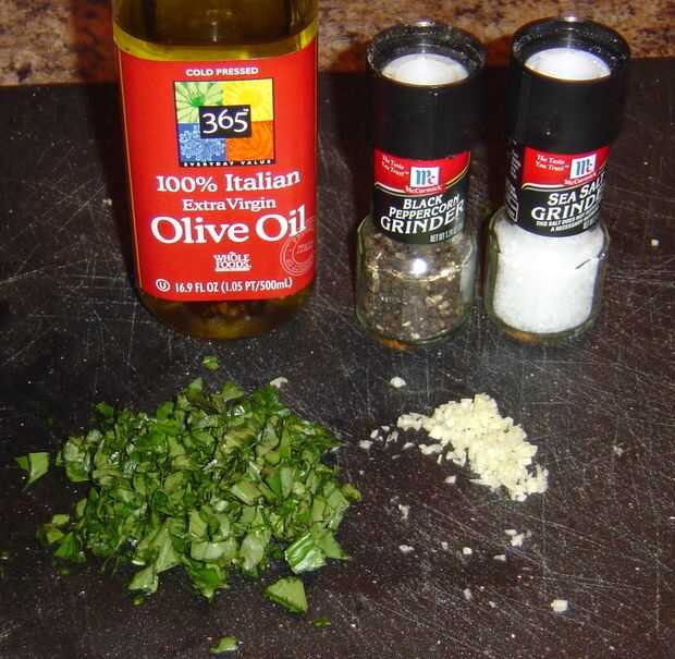 Tuve algunos albahaca sobrante del mercado del agricultor, así utilicé algunos picada ajo. Esto también sería bueno con tu mezcla favorita de condimento italiano.