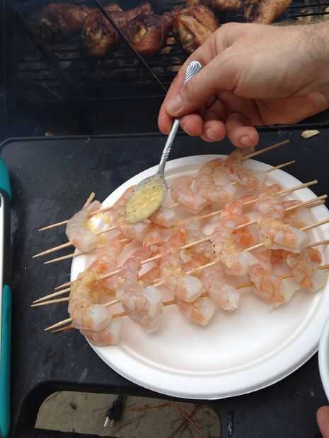 Barbecued camarón Ingredientes:·         1 libra camarones ·         Aceite de oliva ·         Pimienta negra agrietada ·         Sal ·         Jugo de limón ·         Tabasco ·         Lea & · de Perrin         MantequillaIndicaciones:Coloque el cam