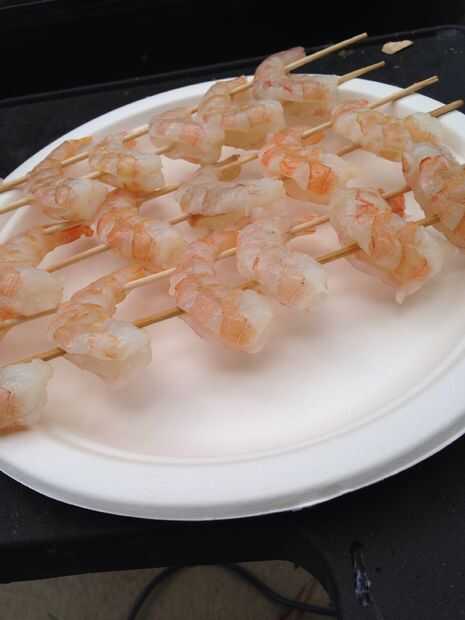 Barbecued camarón Ingredientes:·         1 libra camarones ·         Aceite de oliva ·         Pimienta negra agrietada ·         Sal ·         Jugo de limón ·         Tabasco ·         Lea & · de Perrin         MantequillaIndicaciones:Coloque el cam