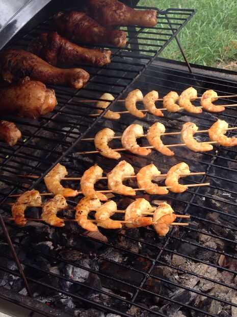 Barbecued camarón Ingredientes:·         1 libra camarones ·         Aceite de oliva ·         Pimienta negra agrietada ·         Sal ·         Jugo de limón ·         Tabasco ·         Lea & · de Perrin         MantequillaIndicaciones:Coloque el cam
