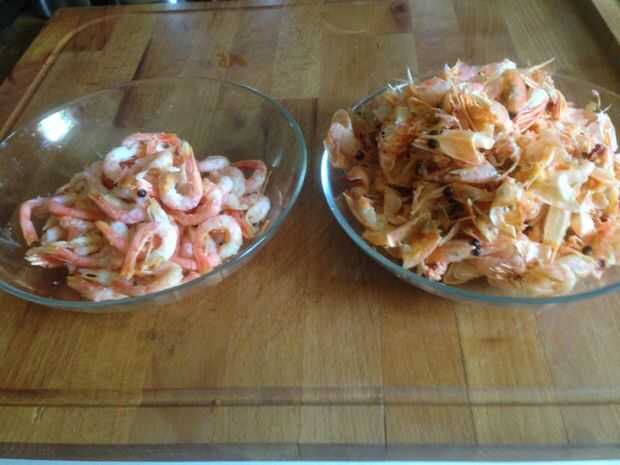 He utilizado 2 calamares en lugar de vieiras. Langostinos limpios manteniendo intacta la cola. Lavar y drenar el agua. Hacer lo mismo con los calamares y picar en trozos pequeños. Si usas madera pinchos los remoje en agua antes de enhebrar la comida de mar. He usado pinchos de metal. Los pinchos de metal del aceite y la comida de mar alternativamente los pinchos del hilo de rosca. Soy un poco quisquilloso en la limpieza del mar. Gracias a mi marido-este paso fue hecho por él.