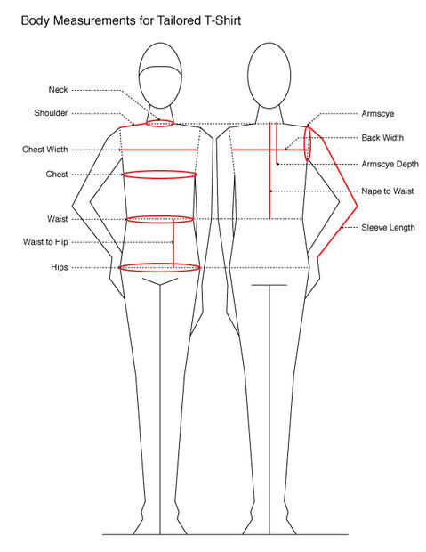 También utiliza 2 'arbitrarias' mediciones: longitud de la camisa es cuánto tiempo desea que su camisa y la facilidad que es cómo apretado o suelto que quiere la camiseta. Una facilidad de 10 es muy floja, una facilidad de la 1 está muy apretada. En los cuadros, la camisa de mujer se hizo con una facilidad de la 2 y la camisa masculina se hizo con una facilidad de 4.