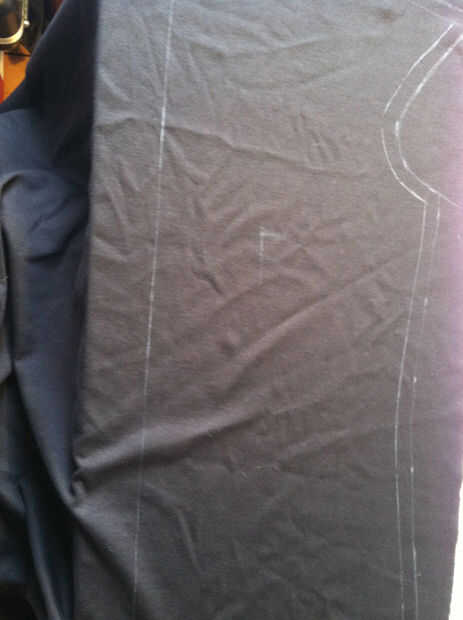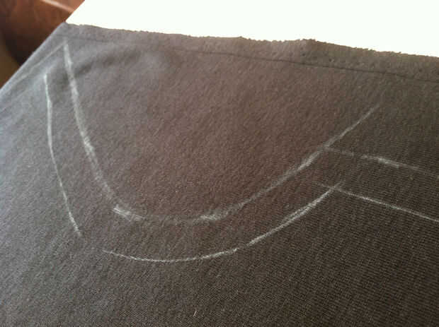 El panel frontal y posterior es sólo la mitad de lo que usted necesita. Doble a la tela y colocar la línea central (línea recta que conecta con el cuello) en el pliegue. Trace su patrón, agregar su margen, y ahora cuando usted corta, tienes los paneles completo delanteros y traseros.