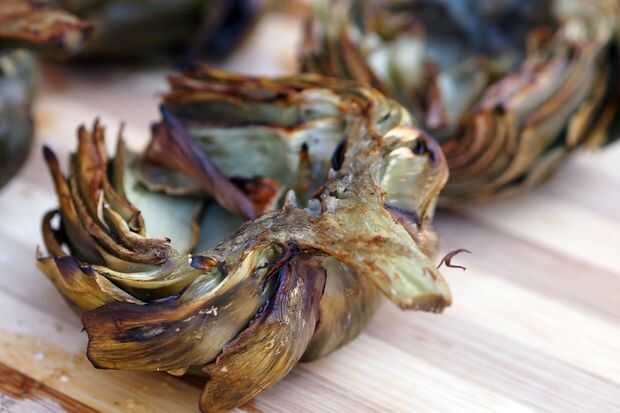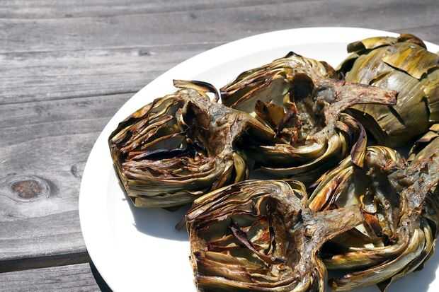 Para comer una alcachofa, tirar de una hoja y puso la base carnosa de la hoja entre sus dientes y raspar de la carne suave. Desechar el resto de la hoja. Una vez que se comen todas las hojas se puede comer el centro carnoso suave conocido como el corazón, así como el tallo. No olvides tu favorita salsa como mantequilla, mayonesa o salsa holandesa.