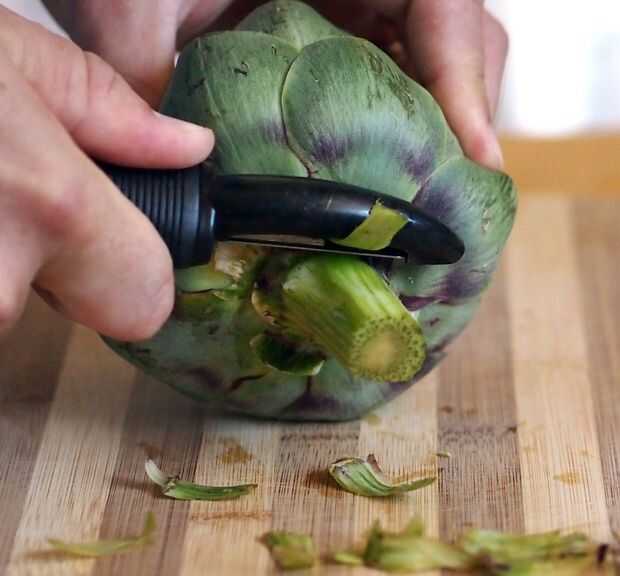 Si te gusta comer el tallo (y si te gusta el corazón entonces el tallo es más de lo mismo), utilice un pelador de verduras para quitarles la piel alrededor del tallo. La opción exterior del tallo puede ser amarga.