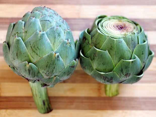 Aquí está una comparación tiro entre una alcachofa preparada y un derecho del mercado.