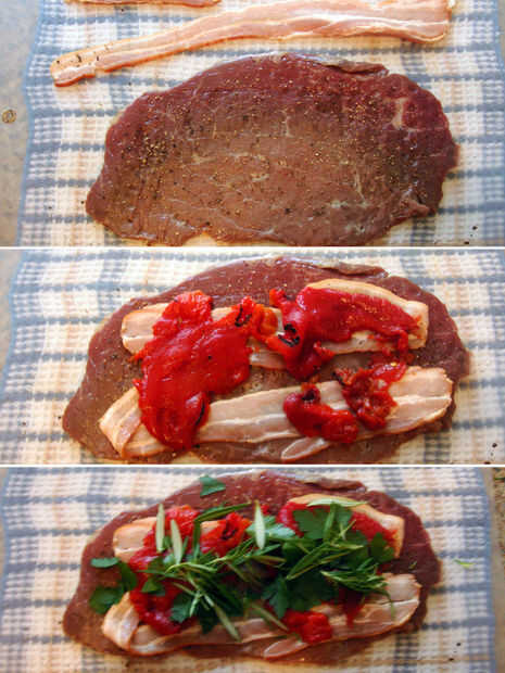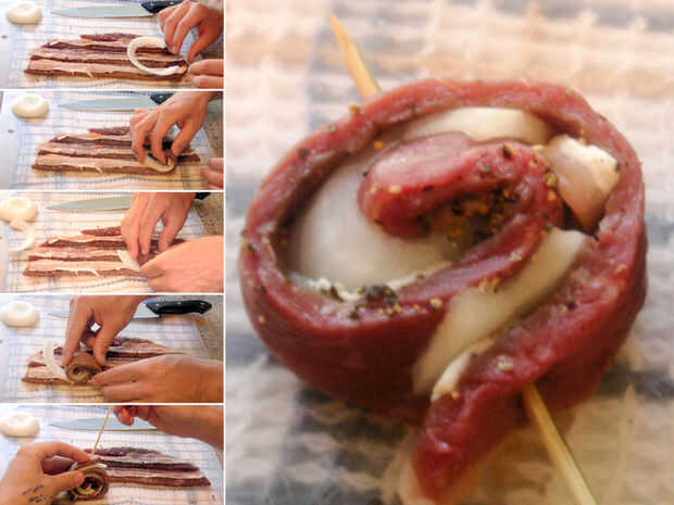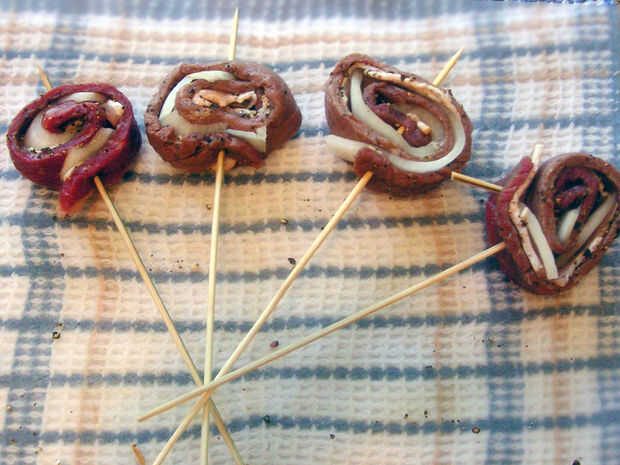 Alternativamente puede rodar la rueda y el relleno como una gran rollo, pincho, luego cortar en secciones después. Todo depende de sus ingredientes.