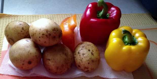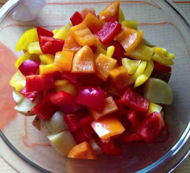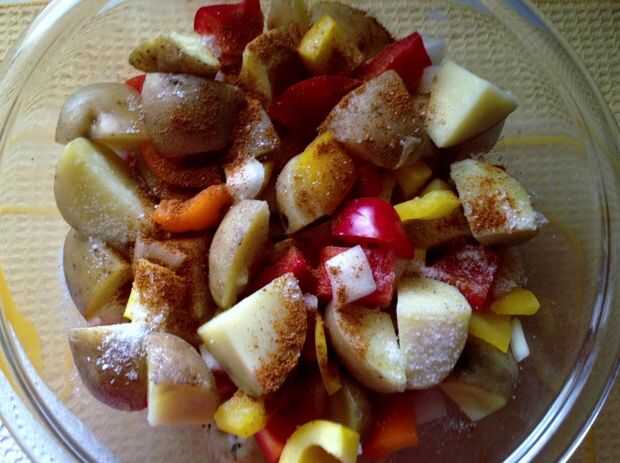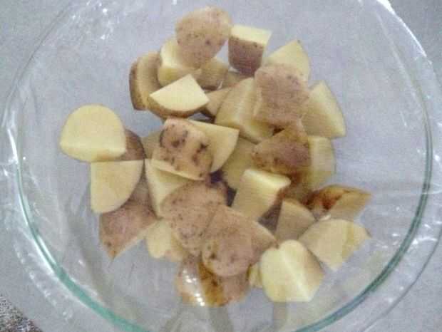 4-6 patatas medianas, limpia y cortada en rodajas de 1 1/2 pulgadas, colocados en un tazón grande