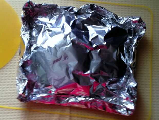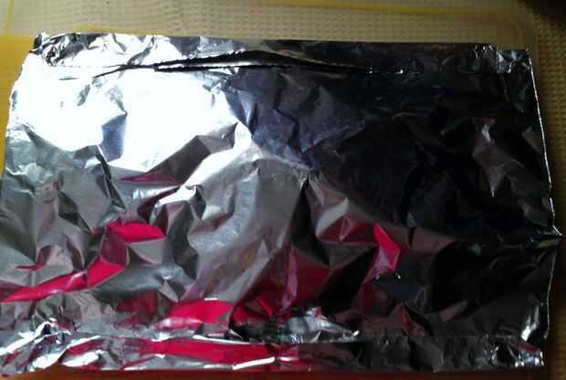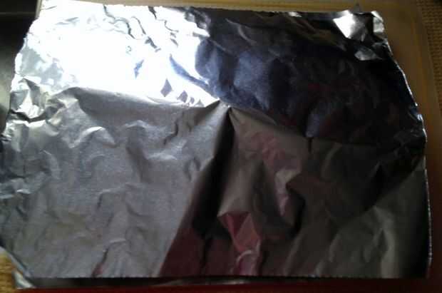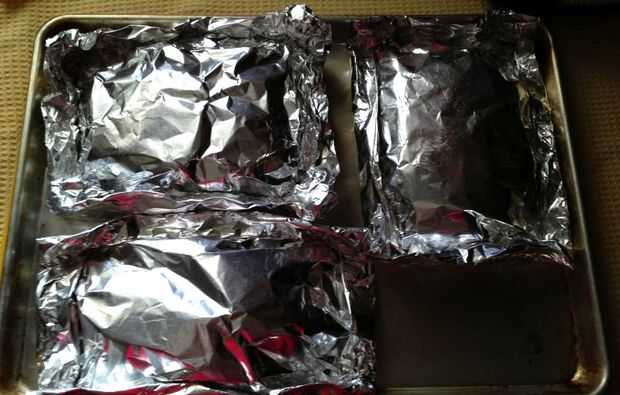 Hice 3 paquetes de papel de aluminio, con 2 hojas (18 pulgadas por 12 pulgadas) de papel de aluminio antiadherente para cada paquete. También puede utilizar papel de aluminio resistente.