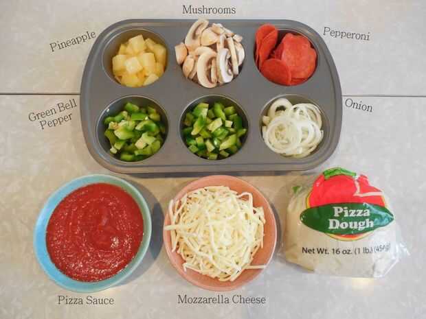 Coloque la parrilla en baja. Cortar sus vegetales y colocarlos en la lata del mollete junto con otras opciones de cobertura. Poner la salsa y quesos en tazones separados así.