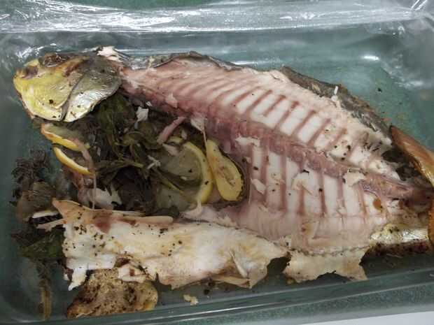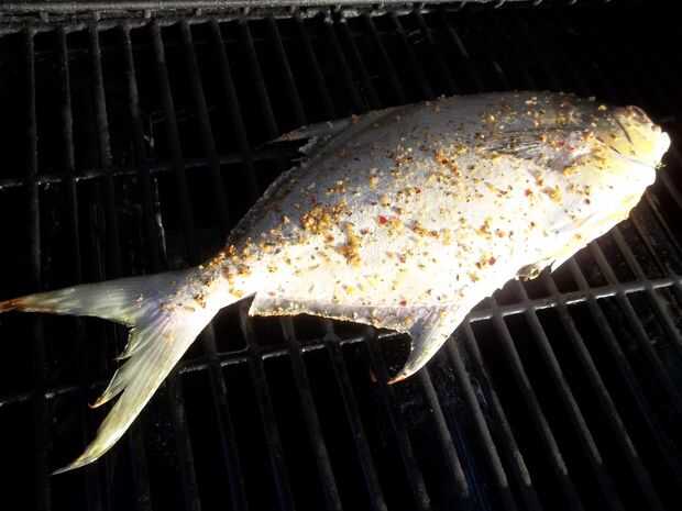 Una vez que se haya limpiado el pámpano, usando las manos, cubrir toda la superficie de ambos lados con aceite de oliva. Rocíe el exterior y el interior con sal marina. Cosas con rodajas de limón, el orégano y la albahaca. Parrilla hasta que la piel esté crujiente por ambos lados. El pámpano en la foto superior fue bastante grande y la parrilla por unos 4 minutos por cada lado.