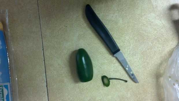 En primer lugar asegúrese de que usted enjuague sus jalapeños, nunca se sabe que ya tocó. A continuación, coger un cuchillo de emparejamiento y cortar las tapas de los jalapeños y deseche la parte superior.