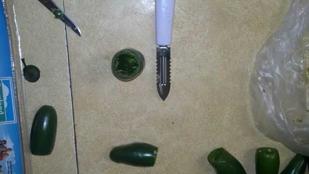 Tengo una herramienta especial para el siguiente paso. Su un pelapapas con un descorazonador en él. Nada de lujo pero hace que el siguiente paso más fácil y rápido.