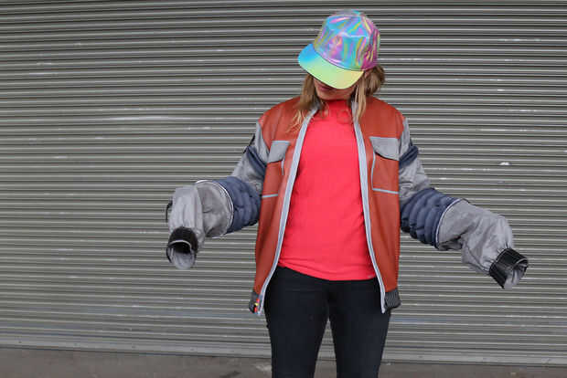 Mi amor por wearables dinámicos y la película detrás del futuro parte II suscitó el deseo de chaqueta de auto-ajuste de Marty McFly hacen una realidad. Teniendo una idea en un futuro donde puede existir ropa de tamaño automático, las mangas de la chaqueta comienzan demasiado, luego suben como si fueran auto ajuste al tamaño correcto. Esto sucede mediante un mecanismo de polea estampado 3D y micro motorreductores. Cuando se pulsa un botón en el dobladillo de la chaqueta, los cables se hieren alrededor de una polea, elaboración de las mangas. Los cables están roscados a través de un sistema de tubo simple construido dentro de la chaqueta y las mangas.