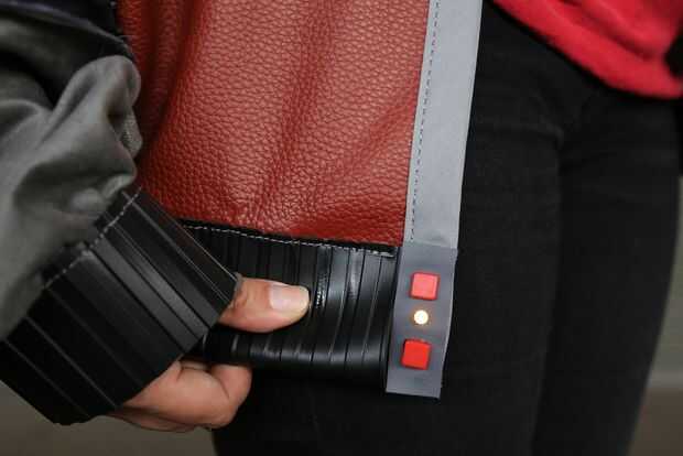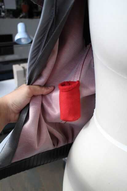 Hacer un bolsillo para el soporte de la batería de algún retazo y coser dentro de la chaqueta que parece cómodo.