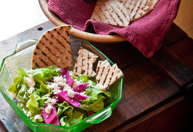 No hay nada como el sabor del pan plano recién hecha. Mi bisabuela vino de Beirut, Líbano y trajo con ella esta receta que compartía con mi abuela que a su vez lo compartió con mi madre y entonces vino a mí. Es muy sencillo de hacer con ingredientes