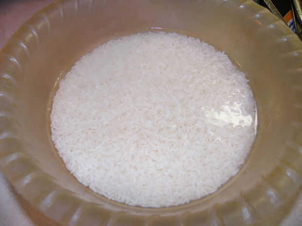 Escurra y enjuague el arroz, cocer al vapor durante 10 minutos
