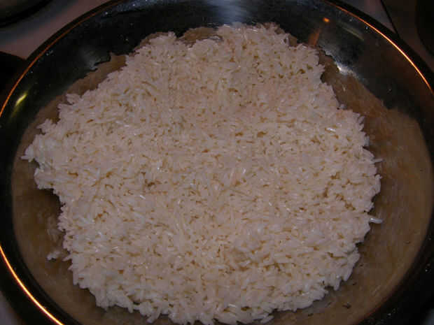 Agregue el arroz cocido al vapor y vapor otra vez durante otros 30 minutos