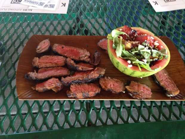 Esta ensalada de frutas a la plancha es super fácil, pero muy impresionante. Un uso una sandía grande para el recipiente y se sirven estilo de la familia, o utilizar pequeñas sandías personales y dar a cada uno su propio. De cualquier manera, esto es seguro para impresionar a tus invitados. El perifollo dulce picante y rúcula picante y el queso de cabra salado trabajan juntos ayudar a equilibrio la dulzura de la fruta.