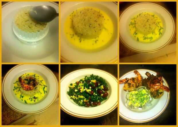 A la plancha langostinos con Chutney de coco Yogurt, comino arroz y ensalada de col rizada (7 / 7 paso)