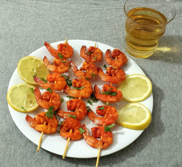 Servir los pinchos con rodajas de limón y dip como mayonesa, Rancho, si se desea.