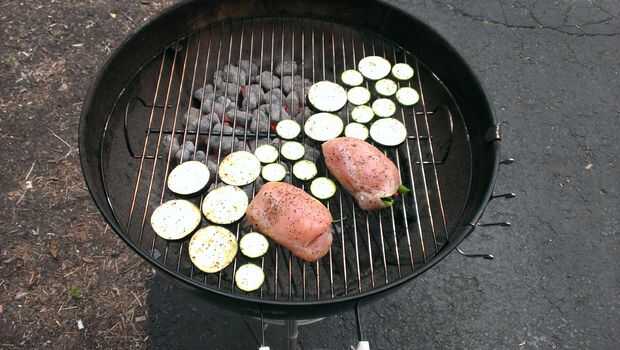 Utilice pinzas para colocar sus pechos rellenos y vegetales a la parrilla en un lugar de temperatura media. Calor es abrasador que es lo que haríamos con algo como un filete pero pollo debe ser cocinado a través de todo el camino para que alto calor sólo grabarlo y seque antes de que se logró el punto de cocción deseado. Poner la tapa en la rejilla y tirar de las pinzas que utilizan en el fregadero. Puesto que éstos fueron utilizados en el pollo crudo tenemos que lavarlos o conseguir un par limpio antes de que toque los alimentos cocinados.