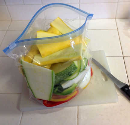 Como estoy preparando las verduras estoy agregando las piezas a una bolsa de cremallera tamaño galón. Esto es donde añado el Adobe y mezclar todo junto.