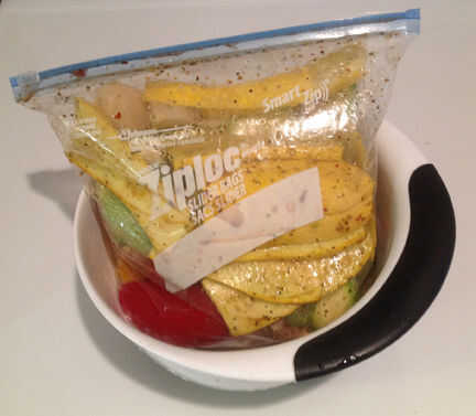 Pongo esto en el refrigerador por lo menos y horas antes de cocinar. Me aseguro de poner el bolso de la cremallera en un bol. Nunca sabes cuando saltará una fuga y en nuestra casa, un refrigerador limpio un hogar feliz.