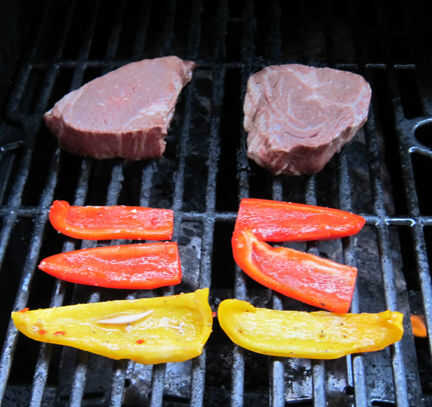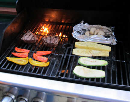 Usted se las parrillas de éstos para una entre 12 a 16 minutos. Algunas verduras se hagan más rápidamente que otros. Asar los pimientos con la piel hacia abajo y el calabacín y la calabaza es a la parrilla de ambos lados.