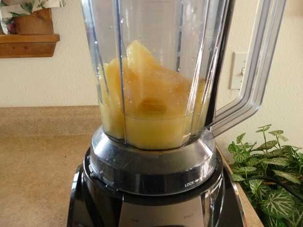 Poner el resto de la piña (con todo el jugo) en la licuadora y mezcla a velocidad alta durante 3-4 minutos.
