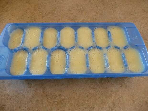 Llenar una bandeja de cubos de hielo con la piña mezclada y congelarlo. Esto puede tomar un par de horas.