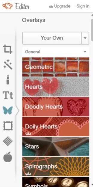 Abra de picmonkey Editor > recubrimientos (mariposa) > tu propio font (panel superior) de los archivos de la computadora
