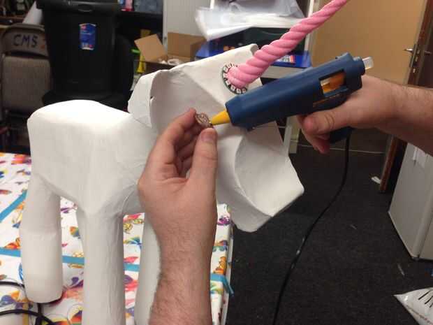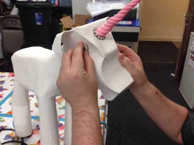 Somos afortunados tener un miembro makerspace que trabaja con el esmalte. Nos hizo unos ojos de unicornio esmaltado de piezas de dos peniques (full instructable aquí), así que nuestro primer paso fue el poder de la vista a nuestro unicornio!