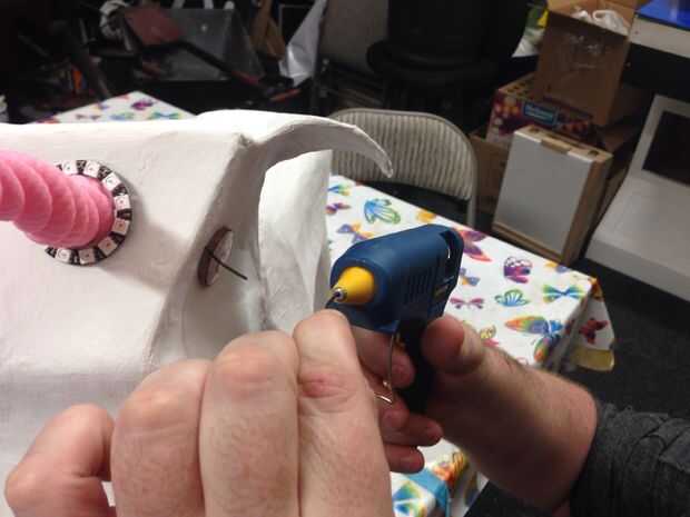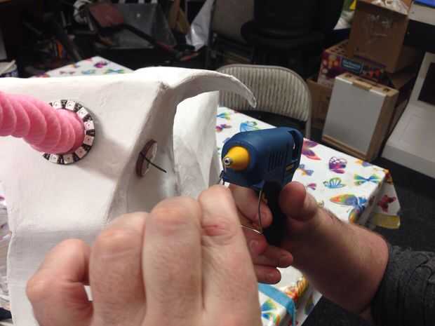 Utiliza pegamento caliente para fijar los ojos, que era una tarea sencilla. Pero, como makergirluk señalado para nosotros, nuestro unicornio es una muchacha así que ella necesita algunas pestañas largas cosquillas! Cortar las pestañas individuales de alambre de tablero negro y había pegado estas así.