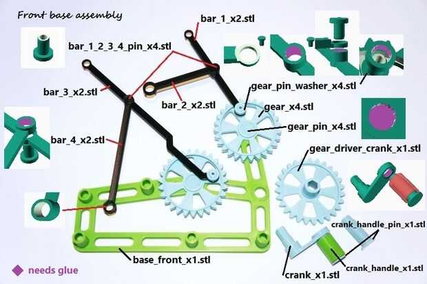 Luego añadir dos de las piezas gear_x4.stly fijarlos con la gear_pin_x4.stl añadiendo pegamento.