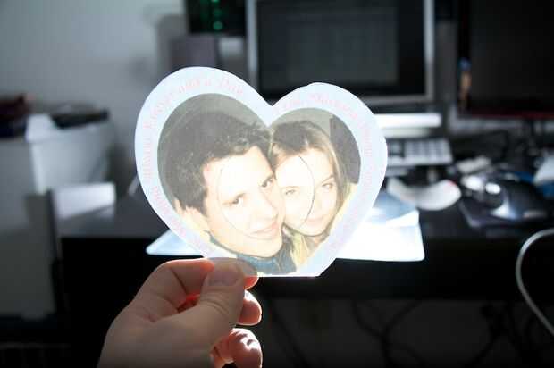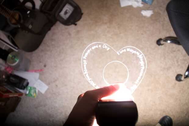 La imagen final muestra después el grabado con el corazón ser borde iluminado por mi flash a efectos de tomar la fotografía.