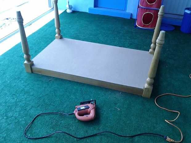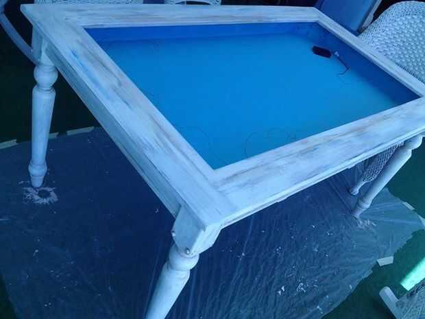 También añade en el vaso que era irregular pero no agudo brillante brillante mirando y mezclado con la arena parecía natural mirando. También agregué en bajo el soporte de la mesa en caso vigas para proteger la arena era demasiado pesado