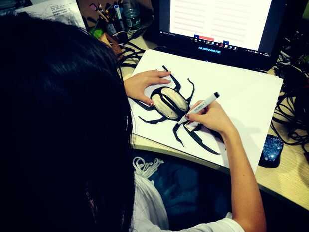 Descargue el archivo 2D y cortar con un cortador láser. Al llegar a la Junta, necesitará pintarlo, para que se vea como un escarabajo real.