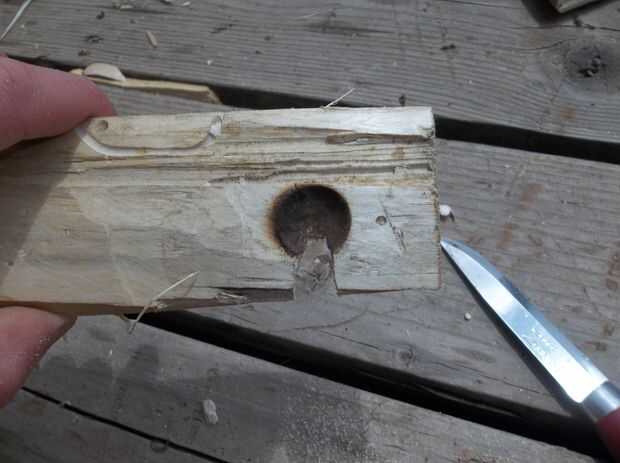 Cuando está perforado, sacar el eje y deje que se desenrolle. Espere que se enfríe y después frotar la punta de la parte superior, que fue y será en la toma, en alguna grasa o aceite o jabón para minimizar la fricción en el zócalo. Si estás en el desierto y sin grasa, frotar en tu pelo y a los lados de su nariz. Recuerde no hacer mezcla de ahora en adelante, o bien la toma en el fireboard conseguirá grasa en ella, y que se librará de valiosa fricción. Ahora, tallar una muesca triangular en el zócalo en el fireboard. Esto es donde se forma el carbón. Debe ir casi a la mitad, pero no del todo y debe ser un poco menos de 1/8 de una tarta. Sólo experimento, porque si es demasiado pequeño, el carbón no tendrá suficiente oxígeno, pero si es para grande, el huso de volar y créanme, lo