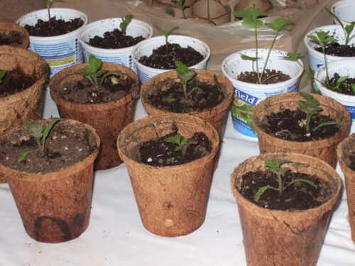 Nota: no puedo recomendar 2" macetas de turba mini, ya que se superaron en brotación de plántulas de tomate por ambos de los otros tipos de envase utiliza con tomates. Concluyo que los grandes son útiles para semillas grandes, pero para las semillas pequeñas, otras opciones son preferibles.